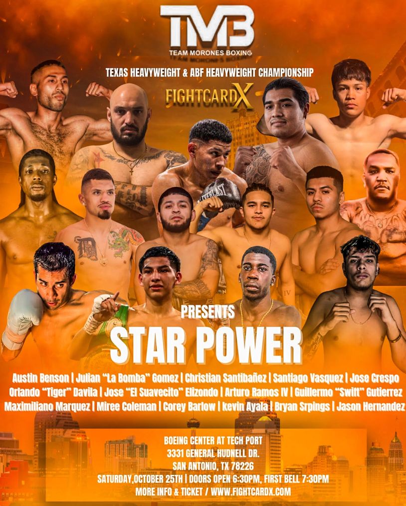 San Antonio boxing fans – get ready. On Saturday, October 25th, TMB Promotions returns to the Boeing Center at Tech Port with one of the most anticipated fight nights of the year. The event, titled Star Power, is loaded with fan-favorite fighters and headlined by a championship clash that promises fireworks.